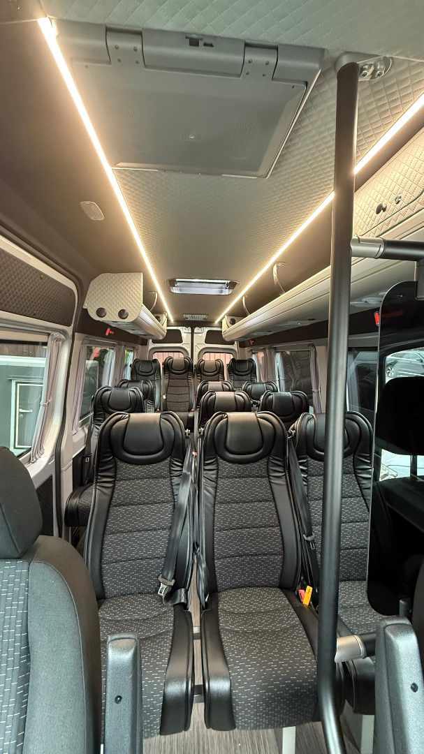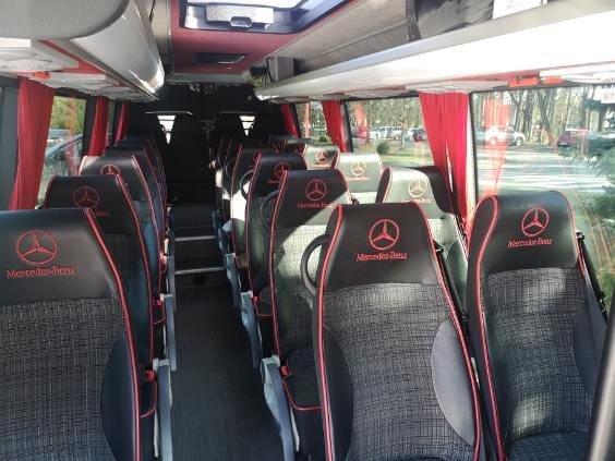 - Fotele wyposażone w składane stoliki, siatkę na prasę, trzystopniowy regulowany podnóżek